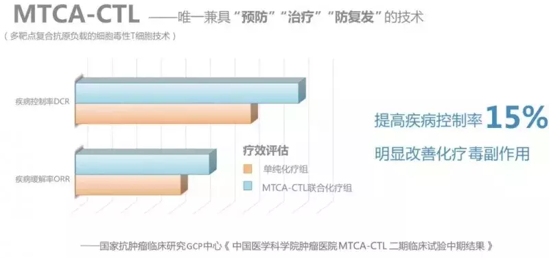 由于其具有多种抗原特异性,杀伤癌细胞更高效,并且效应细胞可在体内持续存在30天以上。辅助放化疗,可提高疾病控制率15%,还能明显改善放化疗毒副作用,提高患者生存质量。