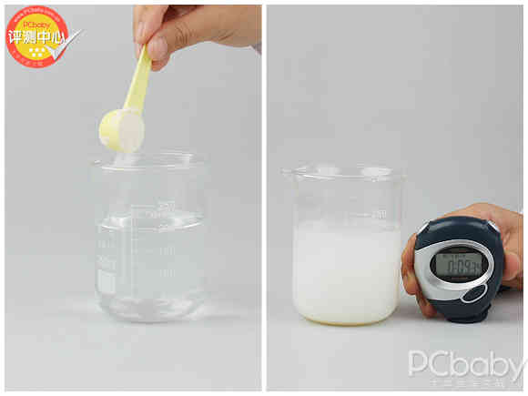 1、将一平勺奶粉倒入装有40℃左右的200毫升温开水的烧杯,观察其下沉溶解情况,记录一平勺奶粉下沉溶解所需要的时间;