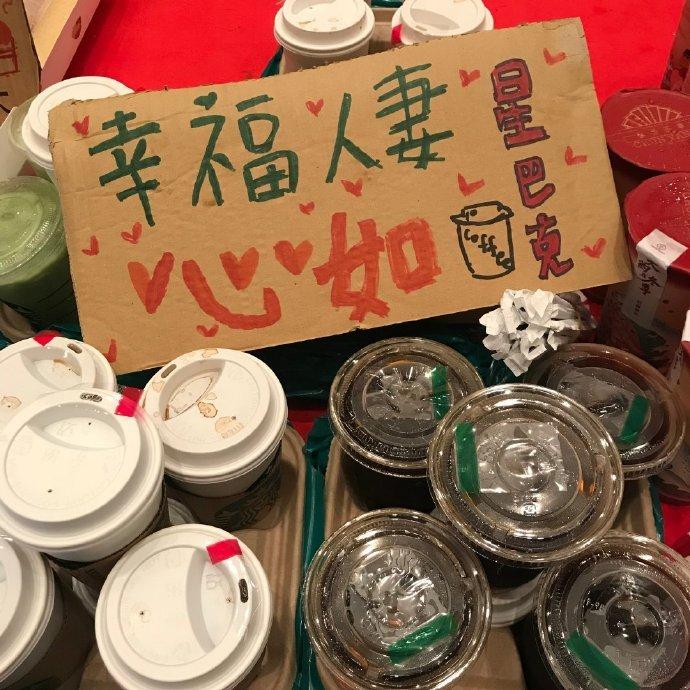 林心如来探班老公自然不是空手来的,作为霍建华的贤内助,她还给剧组带来了星巴克,因为来探班的其他艺人也很多,所以每个探班人员都会写一个大大的牌子,上边写上送的礼物以及艺人名字。