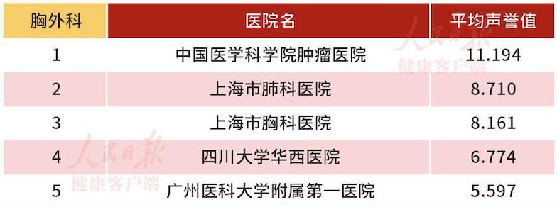 10、胸外科:广州医科大学附属第一医院挤进前五,复旦大学附属中山医院被挤出